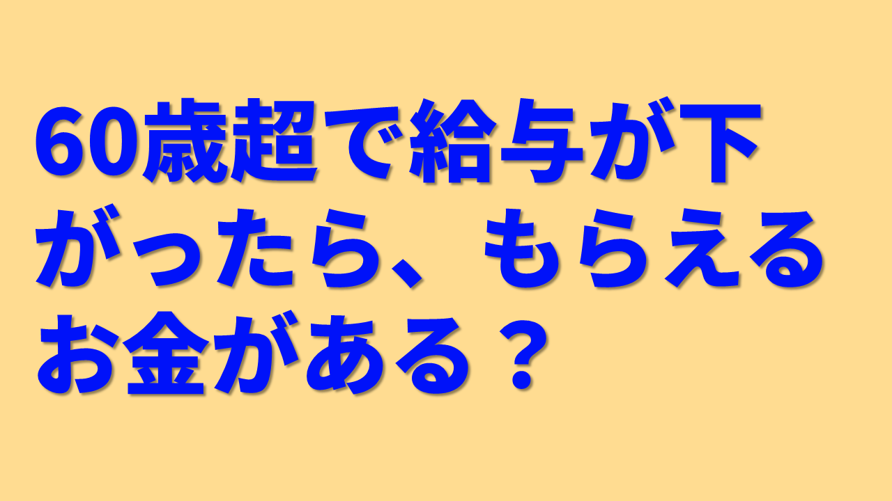 これは、60歳以降も働き続ける人のうち、給与(=賃金)が60歳時点より大きく下がった場合に、雇用保険から給付金が支給される制度です。